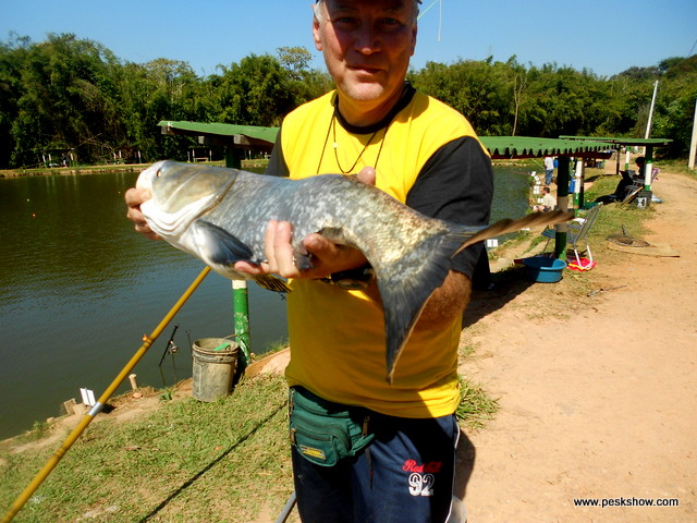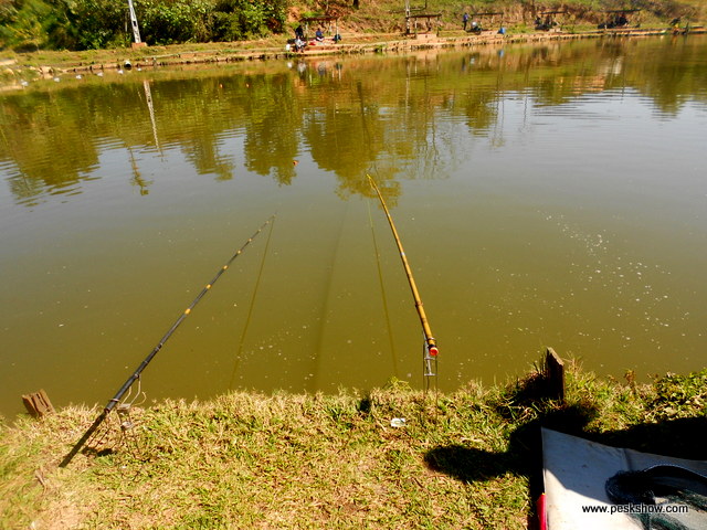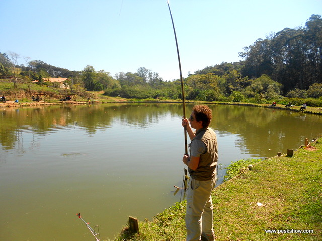 Os dois pescadores entusiasmados com a promessa de um grande dia se deslocou para o lado direito do lago de pesca esportiva, abaixo de grandes bambus que nos proporcionava uma sombra muito confortável para um dia de sol pleno.