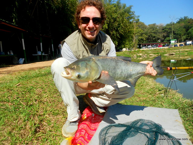 Carpas sendo pegas na vara de mão, carretilha e molinete de uma vez só (Triple) nos fazendo a recorrer a ajudas de pescadores vizinhos.
