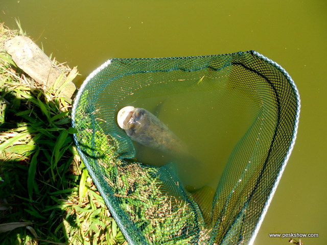 E não é que o milho agradou o café da manhã das carpas! A primeira ação foi na vara de mão, carpa linda de 6 kg.