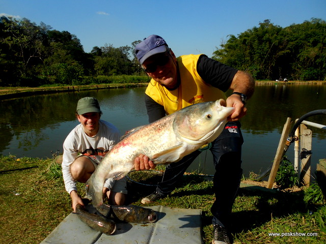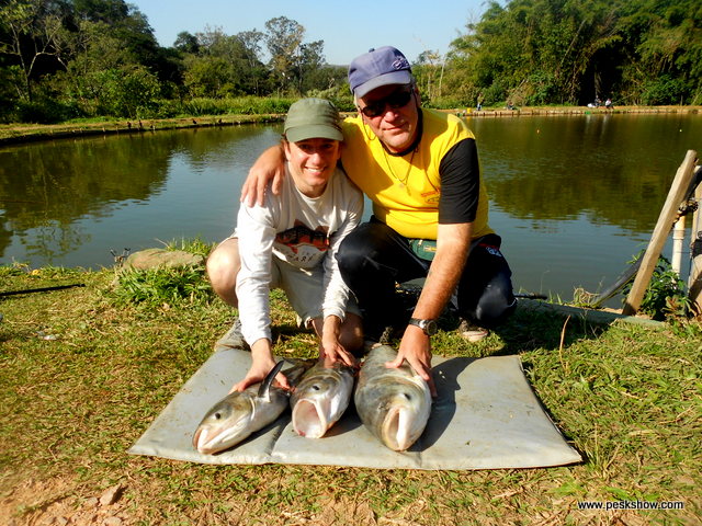 Ao final do dia, dois pescadores esgotados, venerando essas carpas maravilhosas do pesqueiro Barduchi e elogiando o ótimo desempenho da massa Melo de frutas que foi essencial para o nosso sucesso.